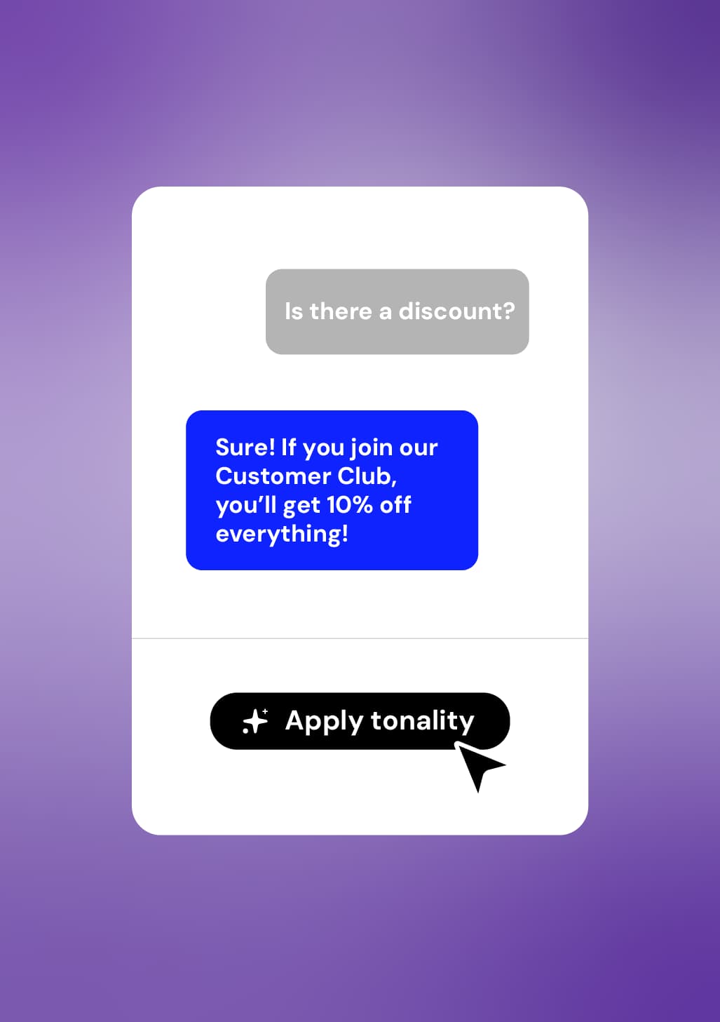 With our custom responses, you can easily adapt homie AI to your brand's tone and style. You can also define how the assistant behaves in certain situations.